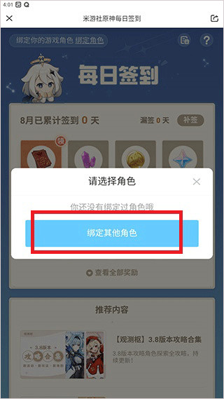 3、如果玩家有原神账号的话,它会自动检测绑定,没有的话可以点击绑定其他角色;