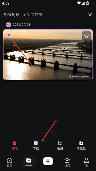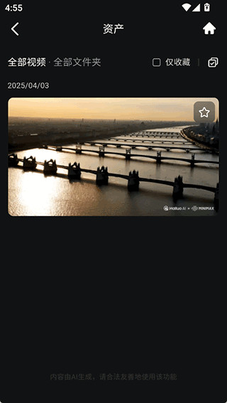 1、用户可以前往海螺AI的资产界面下查看到需要下载的已生成好的视频资源,然后点击右上角的勾选按钮。