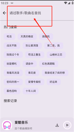 3、点击搜索框,输入歌曲关键词进行搜索。