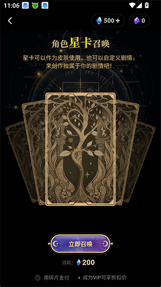 2、角色星卡召唤可以让用户自定义剧情。