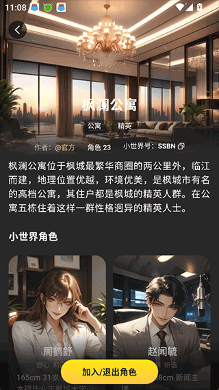 3、进入小世界界面下可以加入角色与别人创建的ai聊天场景进行聊天。