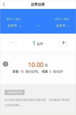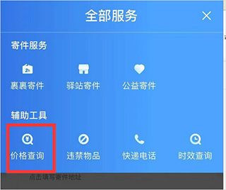 3、选择价格查询服务,进入到运费估算页面,选择自己寄件地址,和收件地址,物品重量,下方就会出现所需费用。