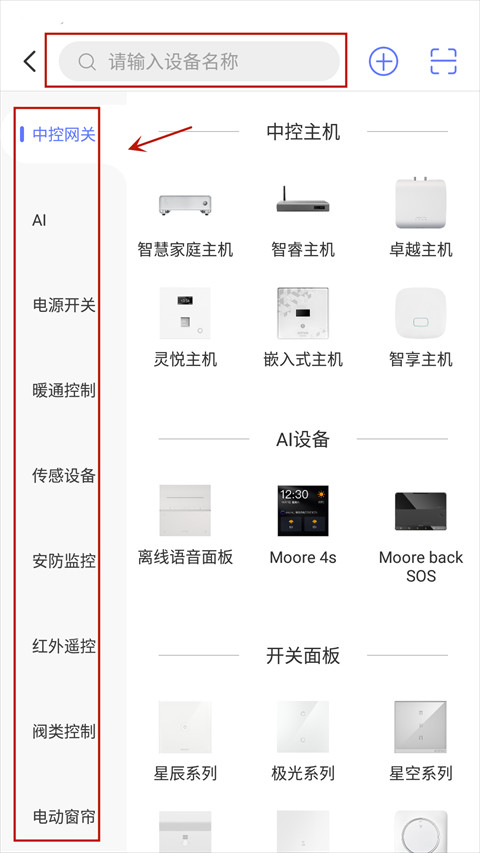 2、在以下页面内通过左侧的导航栏找到自己想要连接的设备类型,也可以在最上面的搜索栏输入设备名称进行搜索。