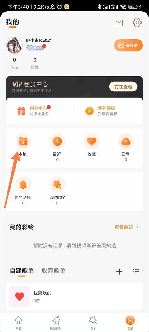 2、在进入个人界面后,可以看见这里有很多有关于我们自己的功能,现在我们点击【本地】进入本地资源界面。