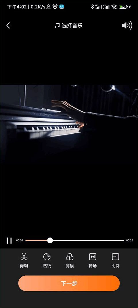 3、然后我们选择需要上传的视频,微微调整一下视频,调整完之后点击下一步。