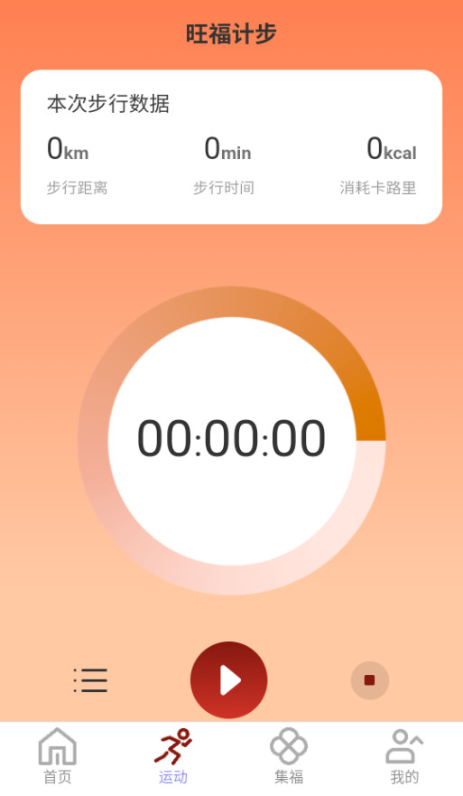 3、在跑步运动时打开旺福计步app,会精确记录你的跑步速度和消耗热量等数据。
