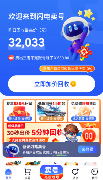 闪电卖号是部面向游戏账号交易的服务平台,提供账号发布、估值参考与担保式交易流程。闪电卖号支持按等级、段位、战力与外观数量等条件筛选,帮助用户更快匹配目标账号。闪电卖号平台强调信息审核与资金托管等安全机制,并配备客服支持处理交易中的常见问题,适合有账号买卖与回收需求的用户使用。