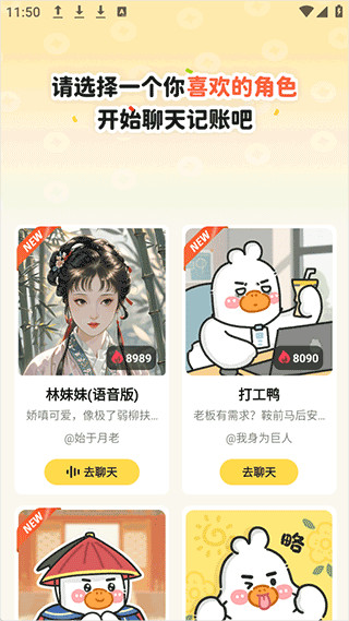 1、打开登录飞鸭AI记账app后选择一个ai聊天角色