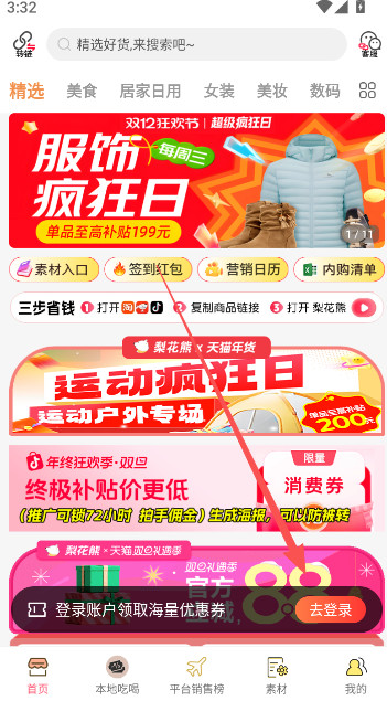 2、跟随图示引导,去往登录页面,新人用户首次使用可免费领取海量福利优惠。