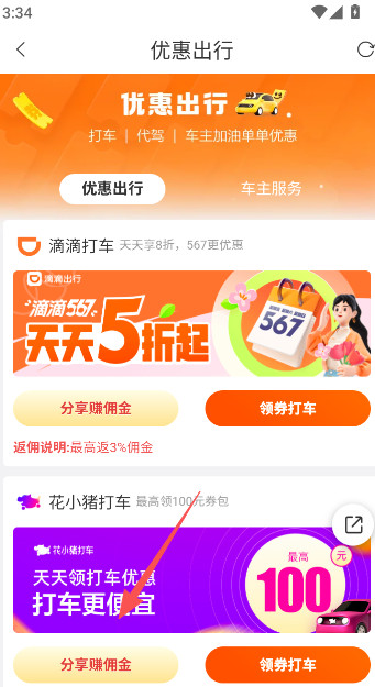 4、选择领券打车或是分享赚佣金的方式,赚取相应的收益。