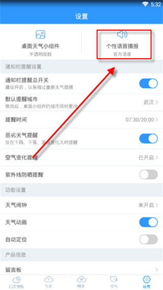 2、点击“个性语音播报”开始设置,从官方语音播报音源中选择