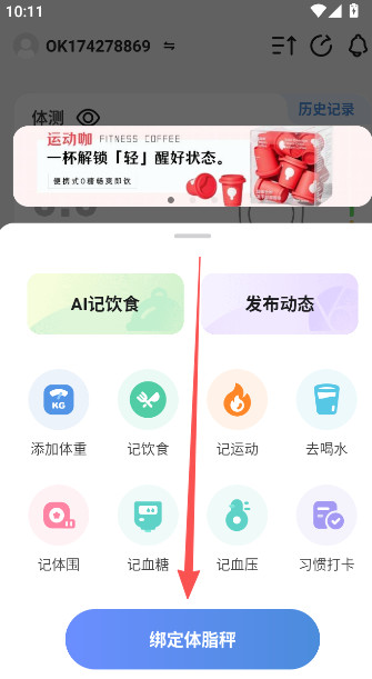 1、在okok体脂秤里,点击去绑定体脂称app应用的连接。