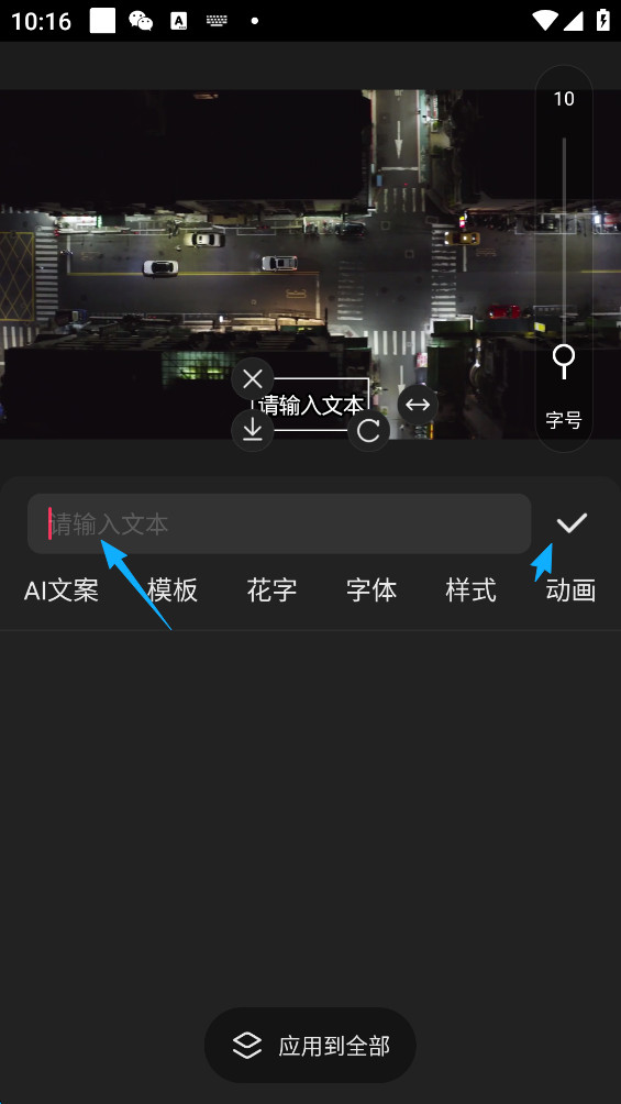 5、再文本框输入字幕,随后点击屏幕右侧的“钩”标识。