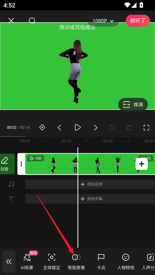 拖动时间轴至关键帧→ 点击“定格”→ 添加关键帧动画(如文字弹出、元素移动)。