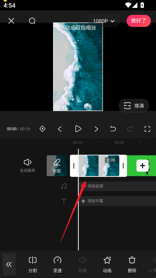 选中片段→ 调节速度(0.2x-10x)→ 支持局部变速(如仅加速某段动作)。