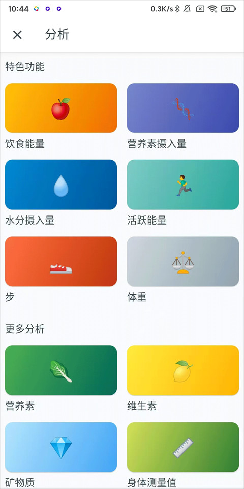 6、点击右上角的功能分析图标还可以查看更多特色功能以及营养分析;
