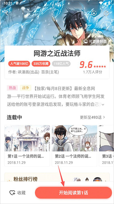 2、然后在漫画详情界面内点击开始阅读;