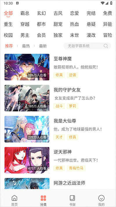 6、热门漫画、最近更新、漫画分类、漫画搜索等功能,让您快速地找到想看的漫画。