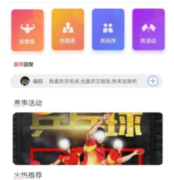 3、找人功能,找教练、找陪练、找玩伴等都可以找,时刻约起来。
