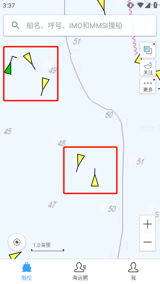 2、放大到一定程度后,在地图上就可以看到当前海域上的船舶了。