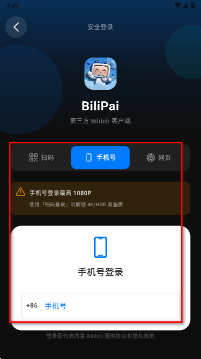 3.可以看到本软件目前支持扫码登录、手机号登录、网页登录。大家可以按照自己的习惯来选择登录方式。