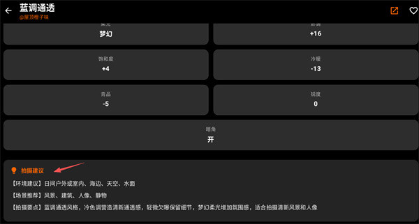 可以查看、收藏优质的大师级调色参数,遇到喜欢的效果能够保存下来反复使用,方便用户在不同场景下快速套用,保持consistent的拍摄风格。