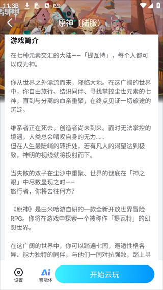 2、你会看到游戏的介绍,游戏截图,直接的点击开始云玩。