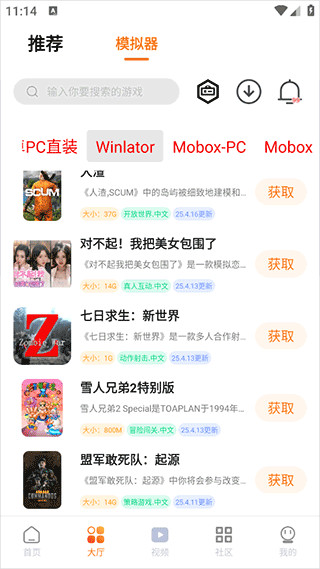 1、用户首先登录超玩游戏盒app后进入大厅界面下选择相关pc模拟器进行点击,例如这里选择winlator
