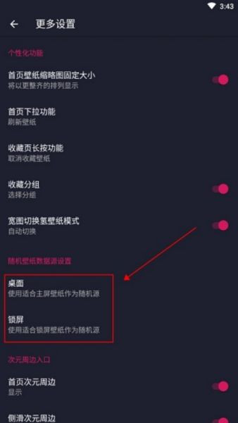 3、在更多的设置中,我们可以找到随机壁纸数据原始设置这里有两个选项:主屏幕和锁屏。您可以根据自己的需要进行选择。