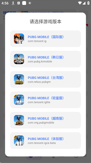 首次使用时,您需要选择对应的游戏版本,APP支持包括 PUBG MOBILE 国际服、韩日服、台服等多个版本。
