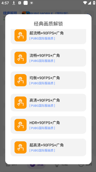 经典画质解锁页提供了多档预设方案,您可以根据需要一键解锁90FPS高帧率、广角等画质选项,覆盖从流畅到超高清的所有画质档位。
