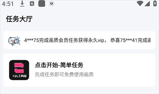 2、任务大厅是免费解锁会员和高级画质功能的入口,完成简单的任务后,即可免费使用APP的画质解锁及其他高级功能。