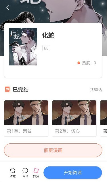 3、点击心仪的漫画封面,就能够进入详情页,点击开始阅读就能够看漫画