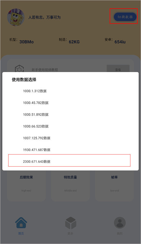 1、打开祯率猫app,在首页点击右上角的切换数据,选择最下方的那个数据