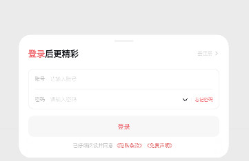 2、在底部会出现登录弹窗,有账号的用户可以直接输入登录,没有的可以点击右上角的点击注册。
