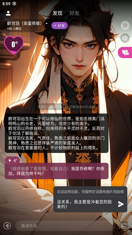 打开幻幻ai聊天软件,用户们可以在发现页面与推荐的AI角色聊天互动