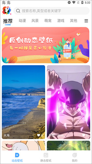 2、进入主界面即可看到主要是划分了动态和静态壁纸。