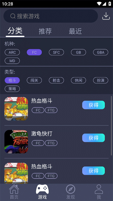 4、在分类页中滑动挑选或搜索栏搜索您想要玩的街机游戏,点击获得进入;