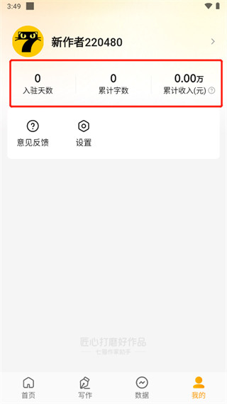 5、我的页面可以查看入驻天数、累计字数、累计收入等。