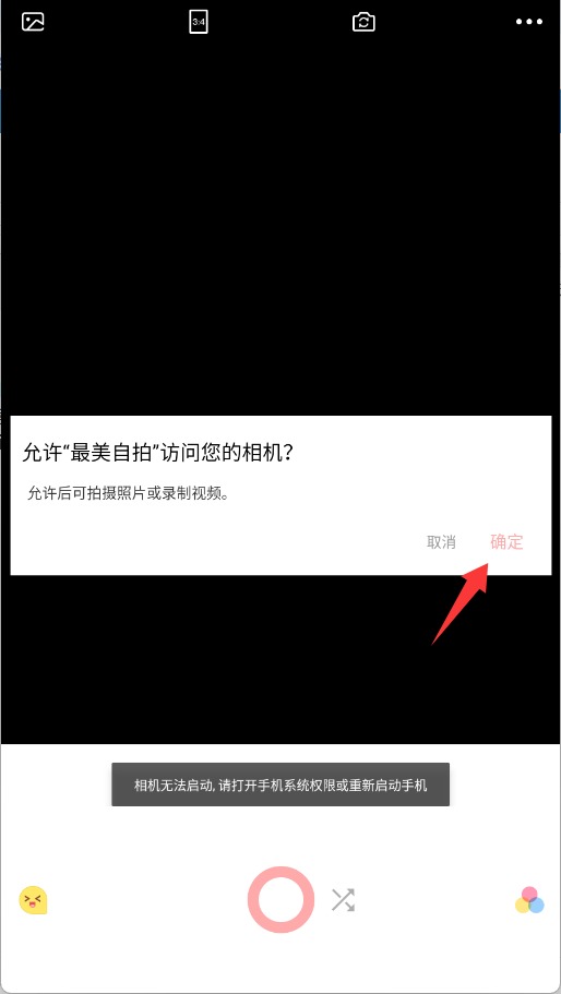 3、系统将申请相机使用权限,需手动点击允许才能启动摄像头拍摄功能。