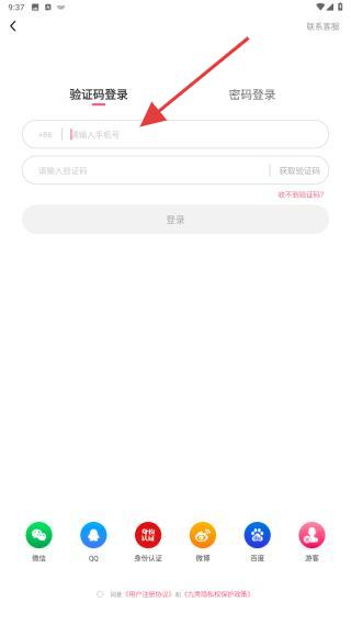 2、在请输入手机号输入框中填写需登录的手机号码,并获取验证码。