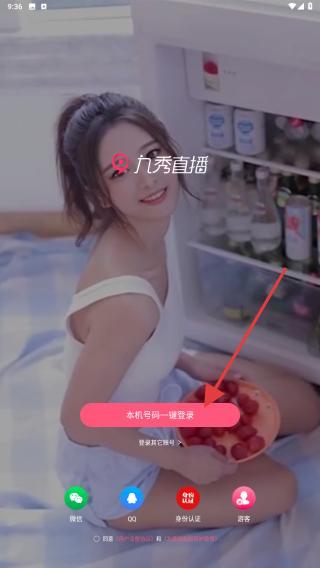1、打开直播APP,进入登录界面后,点击本机号码一键登录。