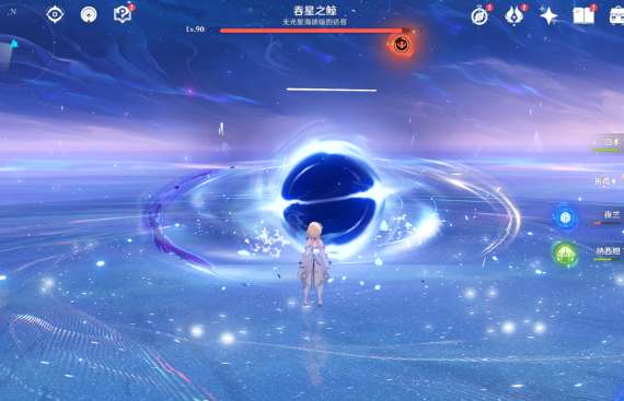 (2)进入后,使用普攻打BOSS,将敌意值打满(注意,BOSS血量低于1/5就不会吞人了,所以尽量别用技能)