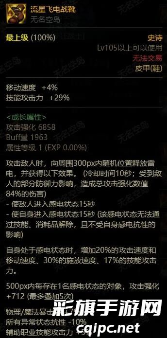 最后就是新版本当中的流星飞电战靴,这个装备拥有超高的三速以及17%的技攻远超其他的鞋子,搭配上上述的两个装备之后手感方面会非常的好,相较于以前的攻速鞋体系就是大幅的上升。通过这三件套能够搭配出全新的搬砖效果。