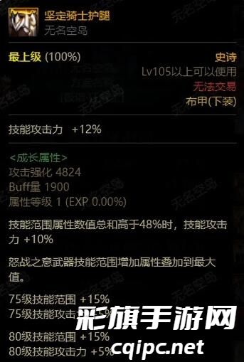 神界版本作为110级的重大更新,游戏增加了很多全新的游戏装备,其中的坚定骑士护腿拥有非常大的优势,这件装备不需要玩家用心的去打造,只需要触发装备自带的特效即可获得10%的技攻,对于增幅的效果性价比要高很多,无论是大天域、空血流、出血流的那一个流派都可以穿搭。