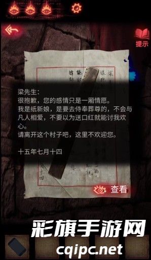 关于纸嫁衣2奘铃村的攻略大全就介绍到这里了,每一章的细节都给大家详细介绍了,更多精彩内容请关注彩旗手游网,我们会持续为玩家们带来精彩的攻略内容!