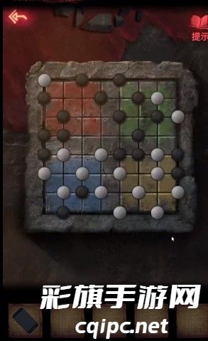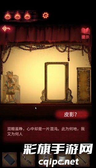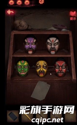3、使用手机查看舞台,会出现线索提示,再回到上个场景点击面具,根据高能上面具的摆放位置进行调整摆放,然后点击获得白纸提示。