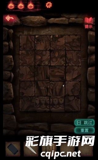 5、再次进入后可以看到墙上的石板显示了,需要拼图。