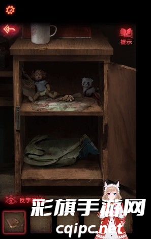 2、接着看到梳妆台,左手边的柜子需要解锁,解锁步骤:嫁衣,树,月亮,菩萨。