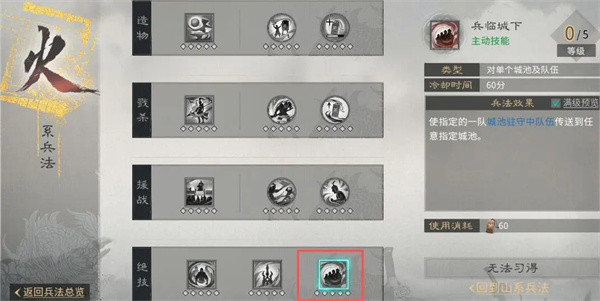 3、当部分盟友通过火系兵法【兵临城下】与清除守军的盟友配合,成功抵达【冰极】或【炎极】时,可立即对目标据点发动风系兵法【金鼓齐鸣】,以快速消灭城防守军。